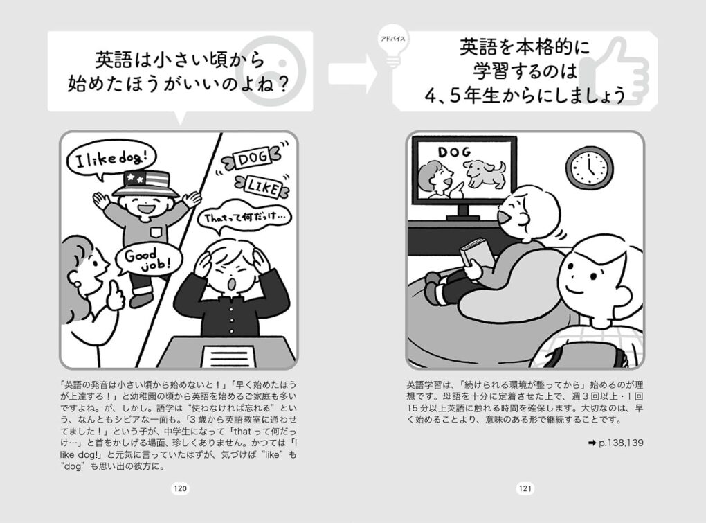 忙しい保護者が、まずはサクッとイラストで、時間がある時にはさらに詳しい解説でと、2段階で理解を深められよう構成されています。