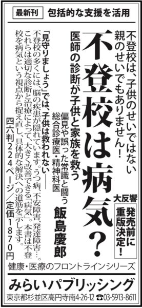 2/3(火)読売新聞に広告掲載『不登校は病気? 〜医師の診断が子供と家族を救う〜』