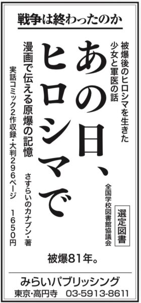 12/7(日)中日・中日北陸新聞に広告掲載『あの日、ヒロシマで ふりがな付』