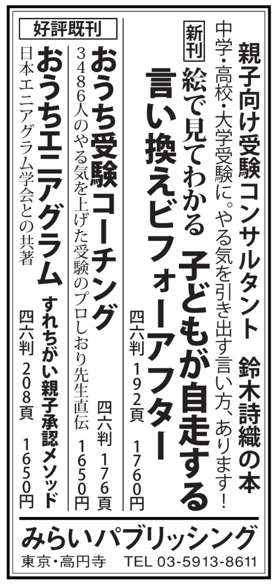 11/7(金)毎日新聞に広告掲載『絵で見てわかる 子どもが自走する言い換えビフォーアフター』