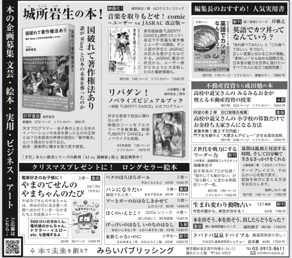 11/29(土)朝日新聞に書籍広告を掲載しました。