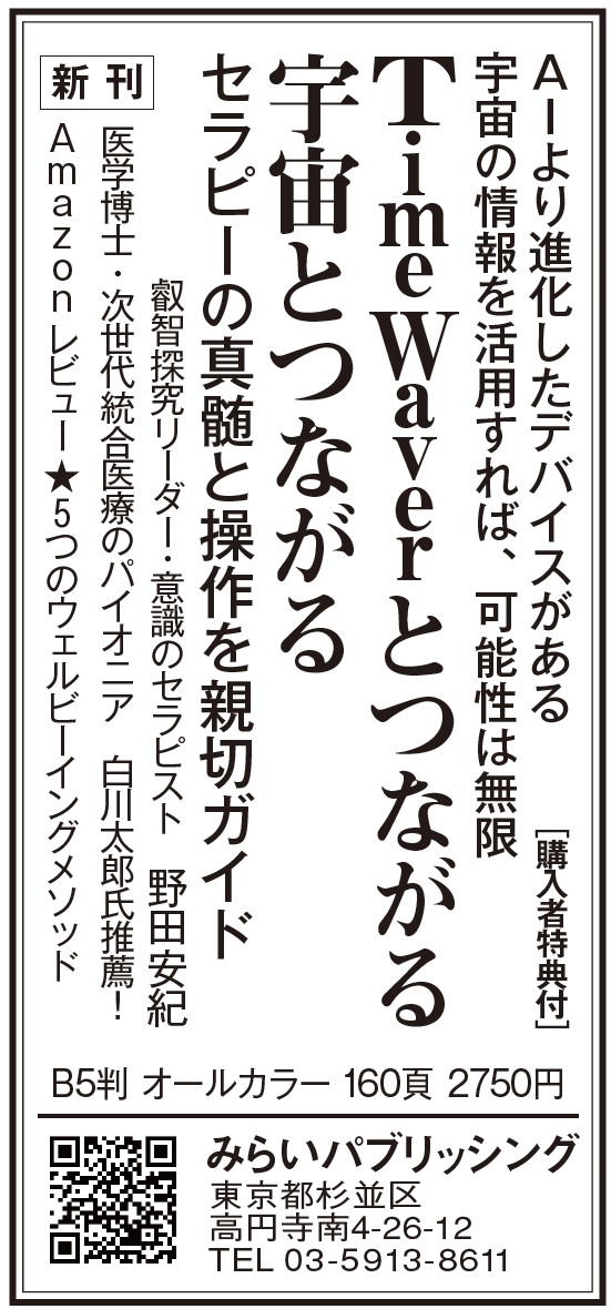 4/22(水)毎日新聞広告掲載『TimeWaverとつながる 宇宙とつながる』