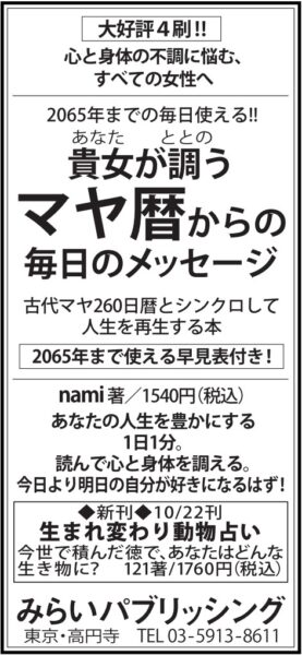 10/6(月)毎日新聞に広告掲載『貴女が調う マヤ暦からの毎日のメッセージ』
