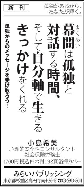 10/22(水)毎日新聞に広告掲載『幕間は孤独と対話する時間、そして自分軸で生きるきっかけをくれる』