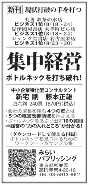 10/14(火)日経新聞に広告掲載『集中経営 〜ボトルネックを打ち破れ!〜』