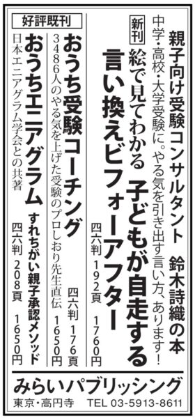 9/25(木)毎日新聞に広告掲載『子どもが変わる! 学童保育』『好きなことだけすれば子どもは伸びる』他