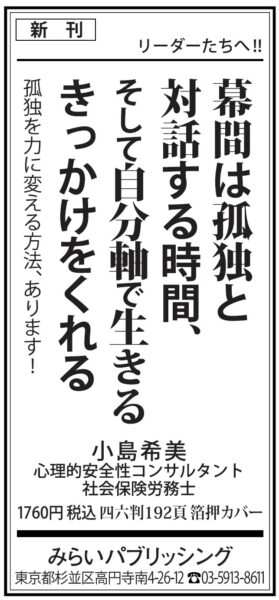 9/30(火)毎日新聞に広告掲載『幕間は孤独と対話する時間、そして自分軸で生きるきっかけをくれる』