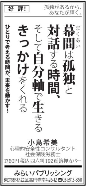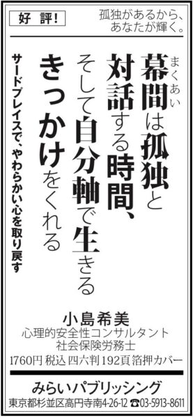 10/22(水)毎日新聞に広告掲載『幕間は孤独と対話する時間、そして自分軸で生きるきっかけをくれる』