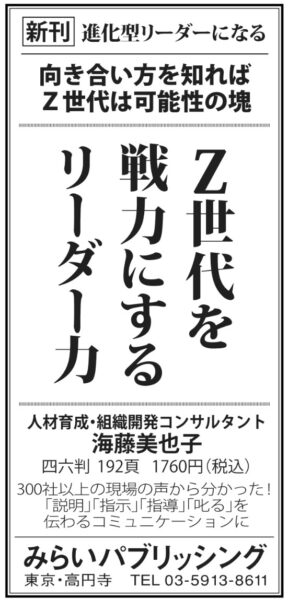 10/23(木)日経新聞に広告掲載『Z世代を戦力にするリーダー力』